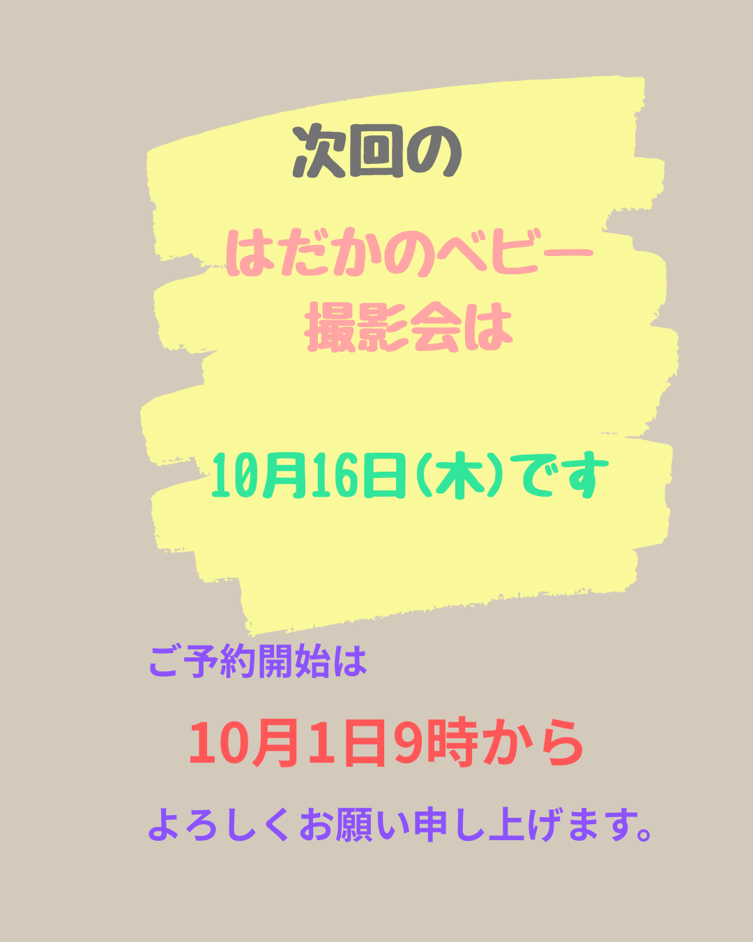 10月16日は、生後6ヶ月までの赤ちゃんを対象にした、はだかのベビー撮影会です。